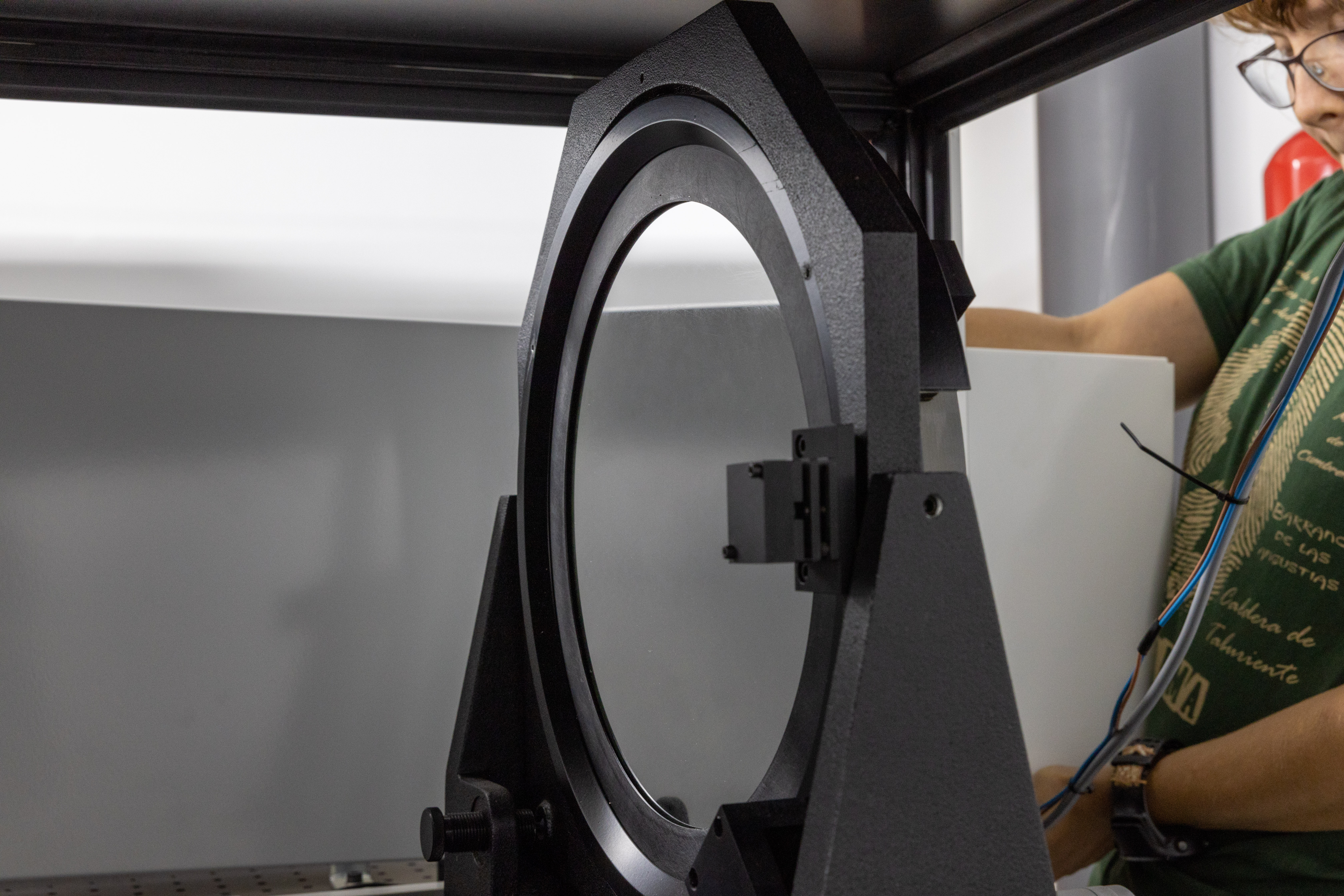 Here A and B are the collimators, and F the flat mirror. Mirror A (left in above pictures with both mirrors) is a double-pass mirror.